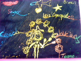 At first we colored a white A4 paper with different coloured crayons and then we painted it with black paint. Finally we used a tooth pick to scratch the paint . We had to draw the fireworks exploding into the sky . It was fun.This is what our art work looks like. We hope you like looking at it.Monday, 7 November 2011