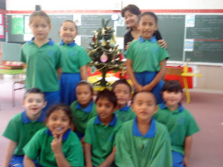 Look at our amazing Christmas tree. We made Christmas decorations and hung them on the Christmas tree brought to us by Mrs Gregorio. Mrs Gregorio had a lot of fun helping us put the decorations on the Christmas tree. The most challenging part was putting the string through the hole on the decorations.