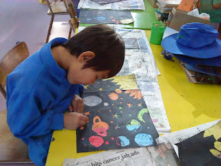 We created a wall display about what we learnt this term. Have a look at what it looked like. We also did a Sgraffito artwork using bright coloured pastels and black paint. It was fun to do and we enjoyed scratching the paint. It took us a long time to finish our artwork . We think out artwork looks fantastic. what do you think?