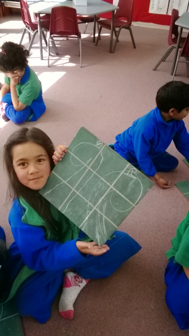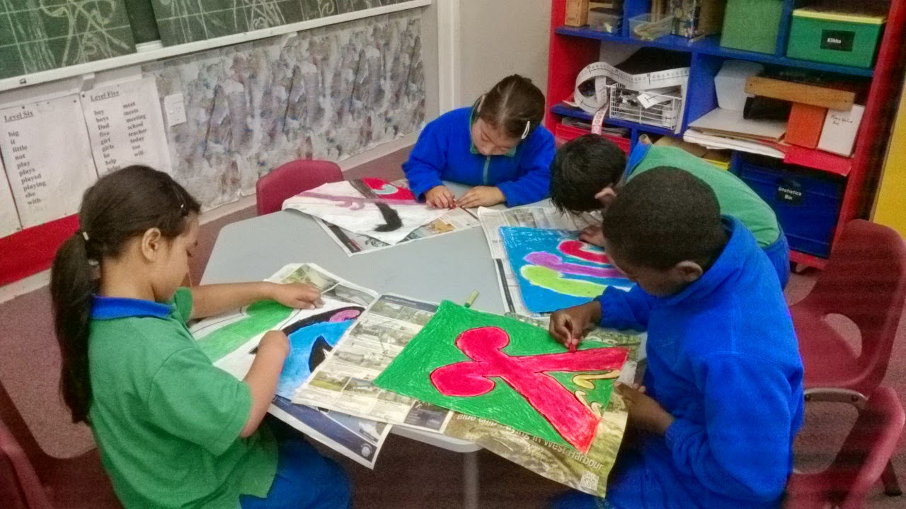 The students use the New Zealand flag to help figure out the colours on the Union Jack (British Flag)