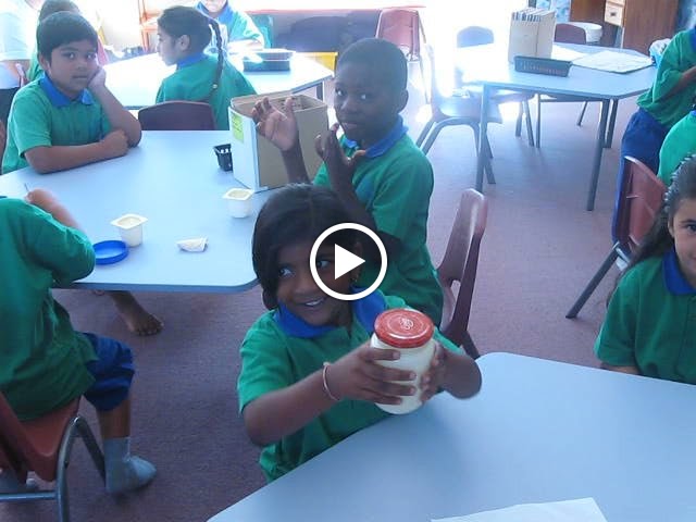The students enjoyed tasting the butter and used the word creamy to describe it. The students also had the opportunity to taste the butter form a supermarket. When the question was asked "How is Room 10's butter different from the supermarket butter ,one of the girls shouted..." the butter from the supermarket is salty".
