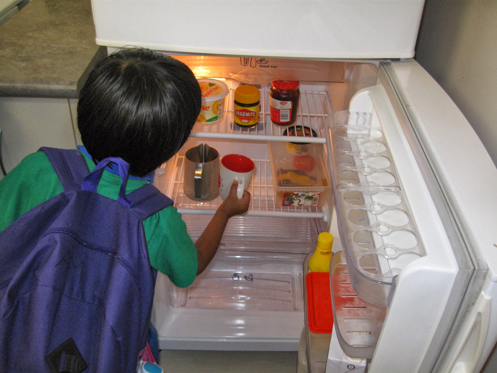 Milk is put in the fridge.