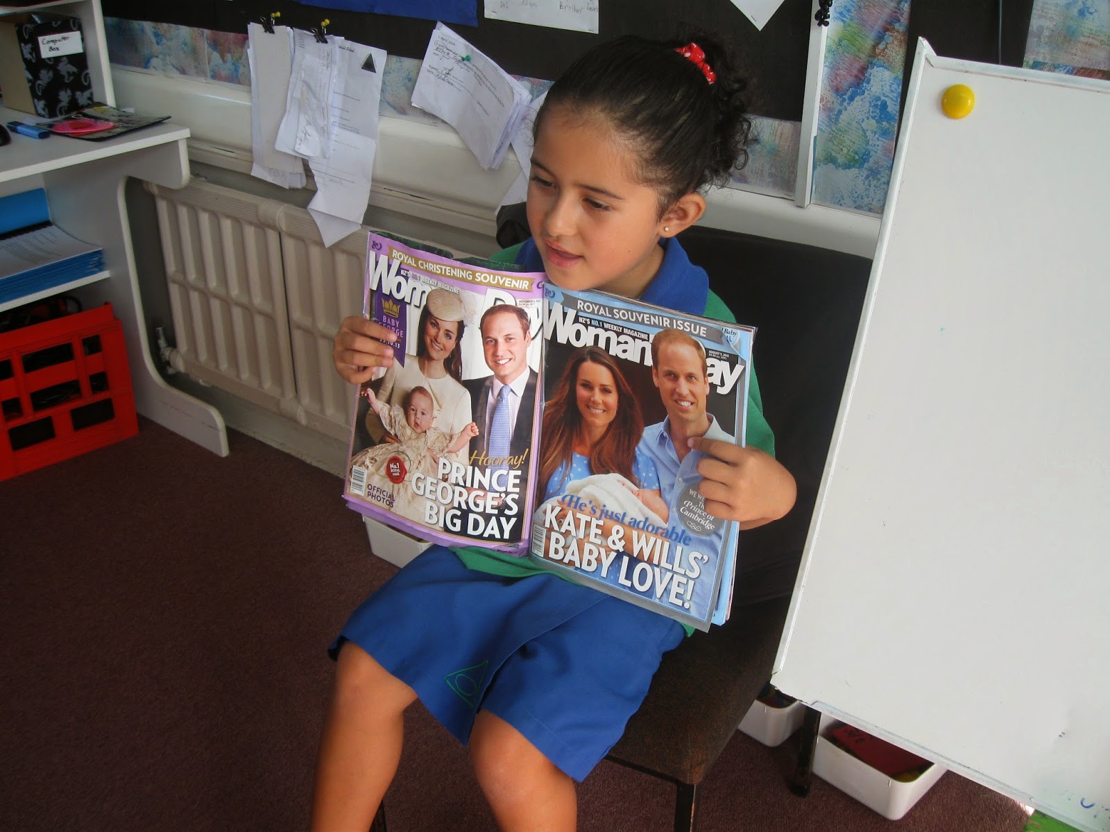 Miss S was the first student who brought a magazine and shared it with the class. Her Grandmother let her borrow the magazine because Miss S told her about Room 10's Royal Week. |