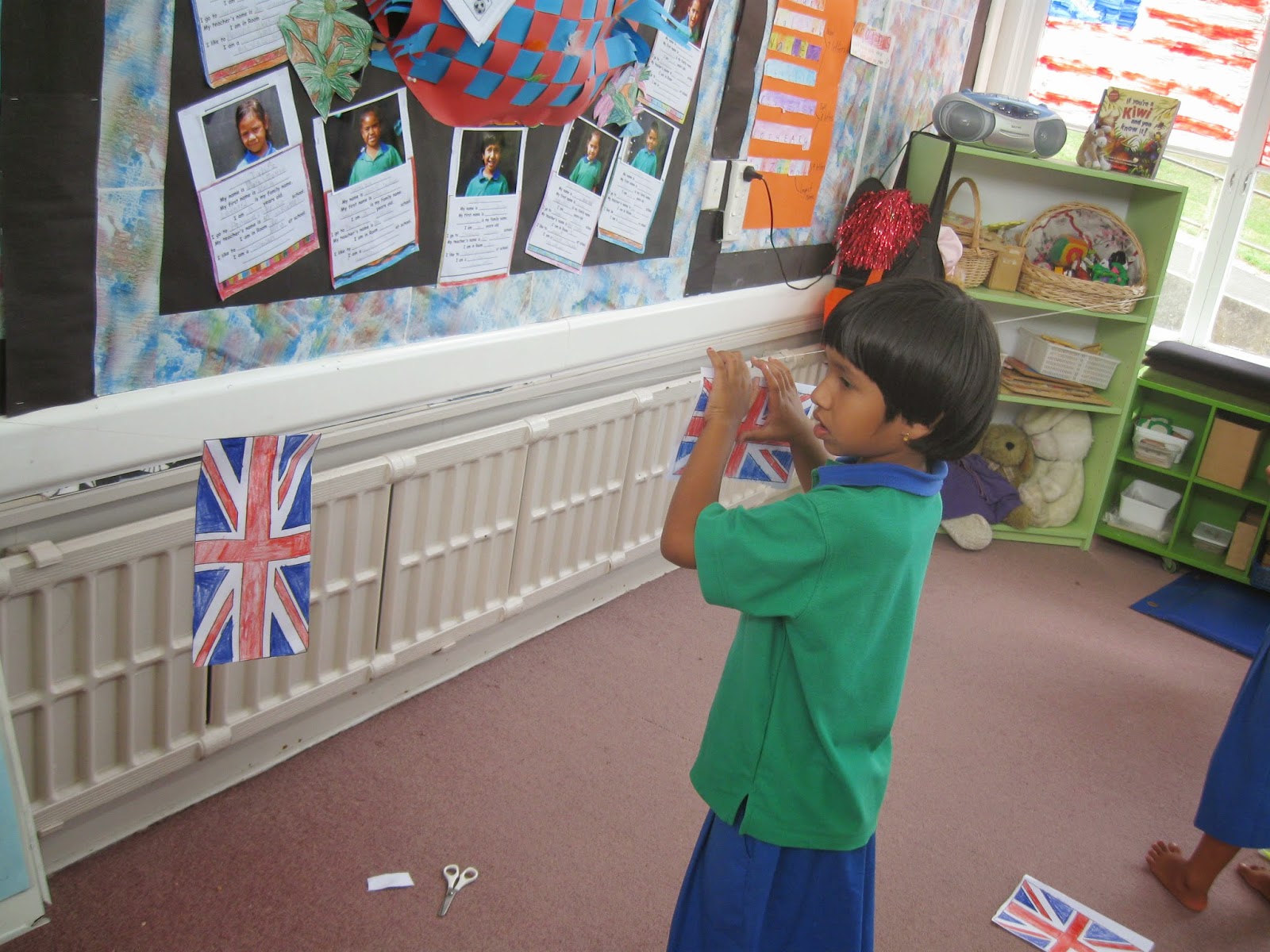 The students also had to do an investigation on...."Can you make a flag banner to celebrate the Royal visit to New Zealand."A large New Zealand Flag was hung on the wall and copies of the United Kingdoms(British) flags, pegs, scissors,cellotape, glue stick, a long string and colouring pencils were provided.The students had to work out how to make a banner.