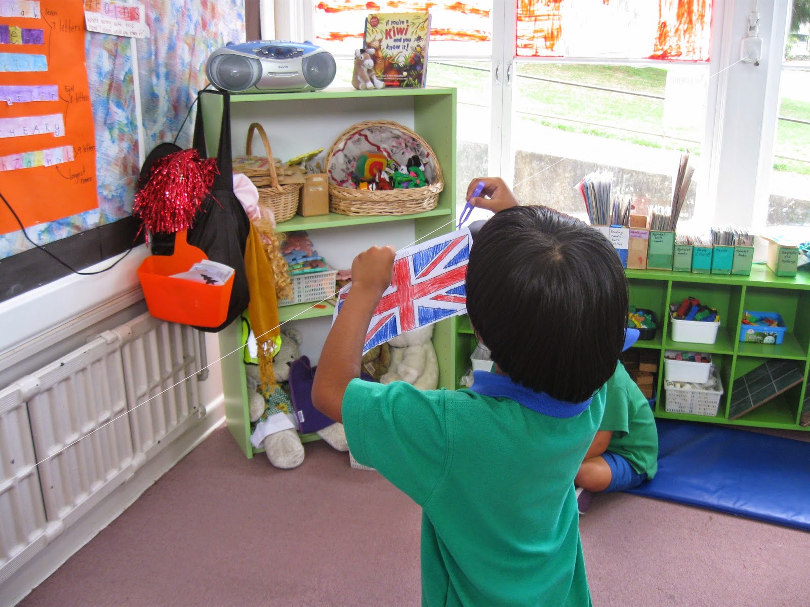 Miss A tried again and again and again using different pegs to hang her flag and finally she did it all by herself. |